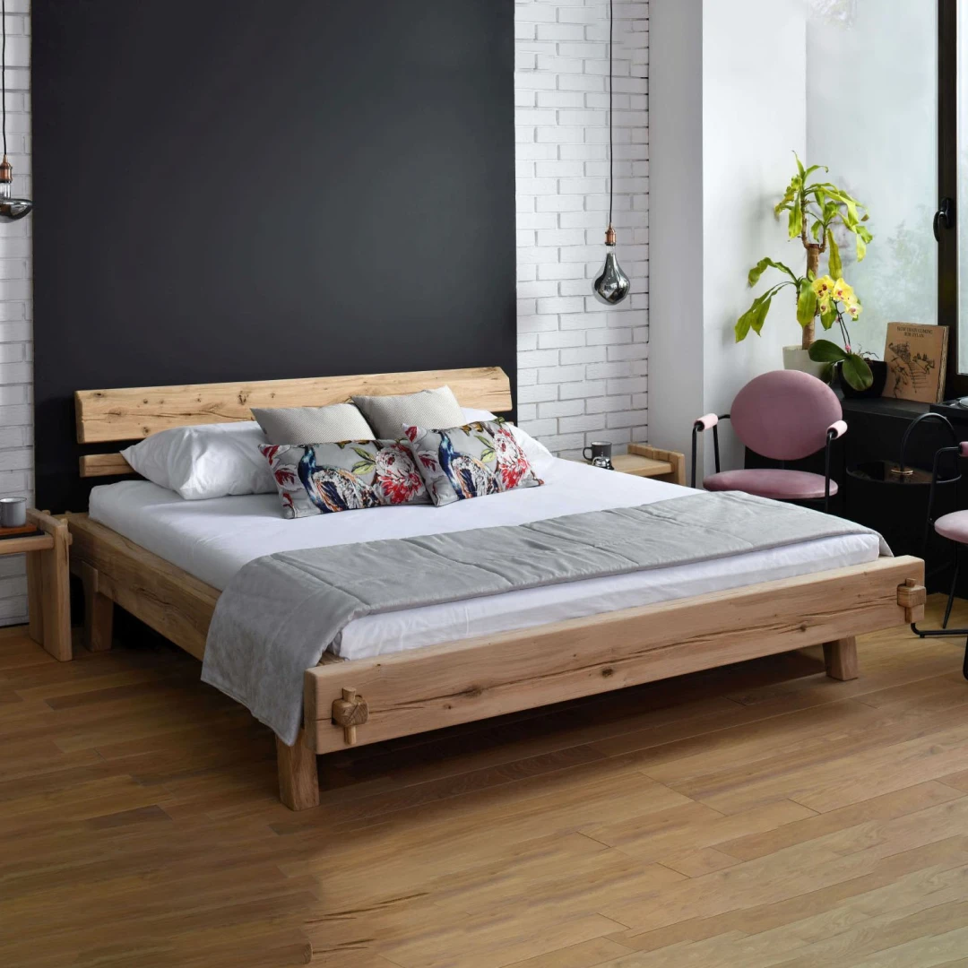 Astivo ist ein vollständig aus Holz gefertigtes Bett, das natürliche Ästhetik und rustikalen Charakter auf beeindruckende Weise vereint. Gefertigt aus hochwertigem Massivholz, vermittelt es ein Gefühl von Wärme, Geborgenheit und Ursprünglichkeit.
