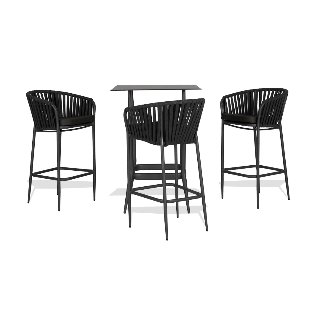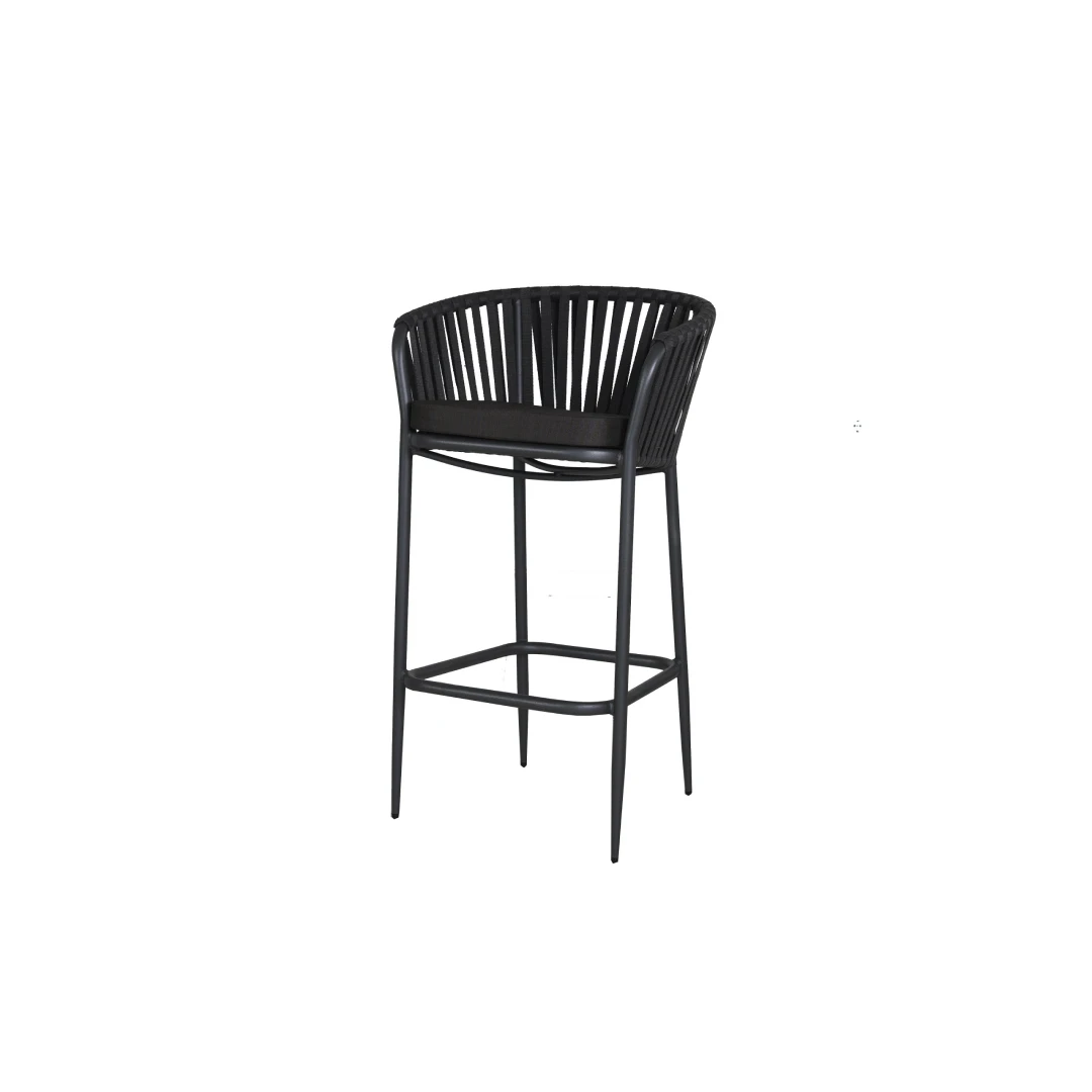 Einfach und bequem – der Barhocker Darya ist ein Klassiker der Kollektion aus Kunststofffasern. Seit Jahren bewährt er sich auf verschiedensten Terrassen mit hoher Sitzgelegenheit und fügt sich dabei mühelos in jedes Ambiente ein.
